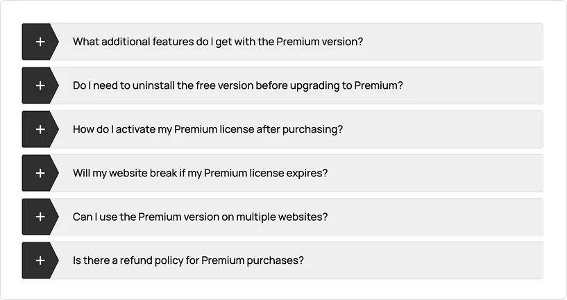 Yes– 100% safe. All your current FAQs, accordions, content, shortcodes, and settings remain completely intact when you upgrade to the Pro version.
