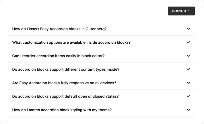 Easy Accordion is a WordPress plugin that helps you create beautiful, interactive FAQs and accordion sections for your website without writing any code.