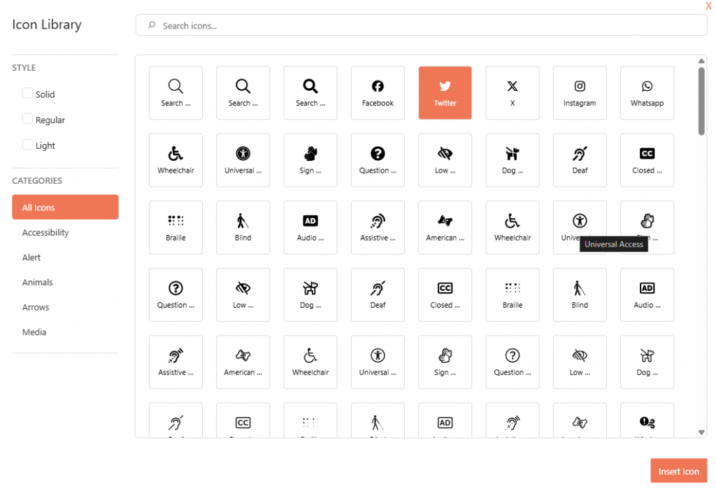 From this panel, you can add a specialized icon to the title area to visually distinguish or brand individual accordion items:
