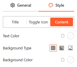 - Content: Manage the Text Color and Background Type (including Solid, Gradient, or Image) for the expanded content area.