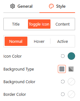 - Toggle Icon: Adjust the Icon Color, Background Color, and Border Color to make the expansion trigger stand out.