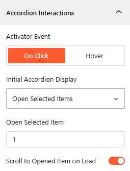 - Activator Event: Choose the trigger to open accordions: On Click, or Hover.