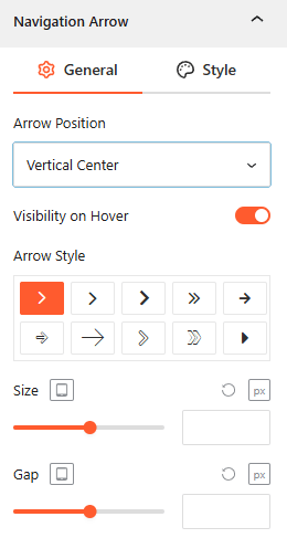 - Visibility on Hover: Enable this to hide the arrows until the user hovers over the slider area.