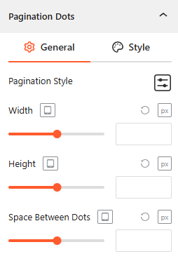 - Space Between Dots: Adjust the horizontal gap (in px) between each pagination indicator for a compact look.