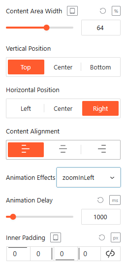 - Animation Effects: Apply dynamic Animation Effects like “zoomInDown” and set a specific Animation Delay (in ms) for an engaging entrance.