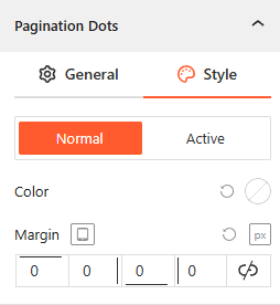 You can fully customize the pagination dots for both Normal and Active states by adjusting the color and the external margin.
