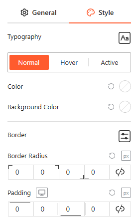From this panel, you can customize the Typography, Color, and Background Color for Normal, Hover, and Active states, and adjust the Border Radius and Padding to create a distinct, badge-style look for your counters.