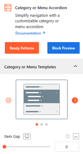 Simplify your post categories, WooCommerce product brands, and WordPress or any custom menus with the customizable Category or Menu Accordion block. It is designed to streamline complex taxonomies or menus into a clean, collapsible interface, allowing users to explore your content without overwhelming the page layout.