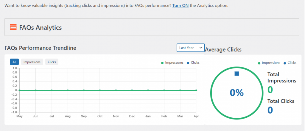 - Total Impressions: Track how many times your FAQ sets have been viewed by site visitors.