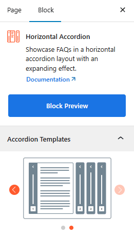 Using the Horizontal Accordion Block, you can showcase FAQs, product details, or text-heavy content in a clean, side-expanding layout. Follow the steps below to add unlimited items and customize the styling as you need.