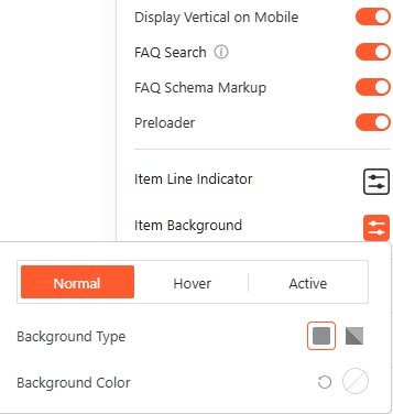 - Item Background: Set specific background types and colors for Normal, Hover, and Active states.