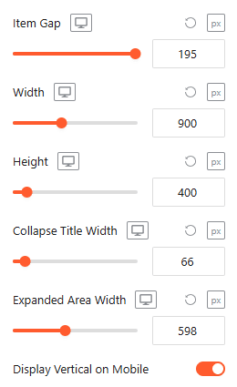 - Display Vertical on Mobile: Enable this toggle to show Horizontal Accordion as Vertical on Mobile.