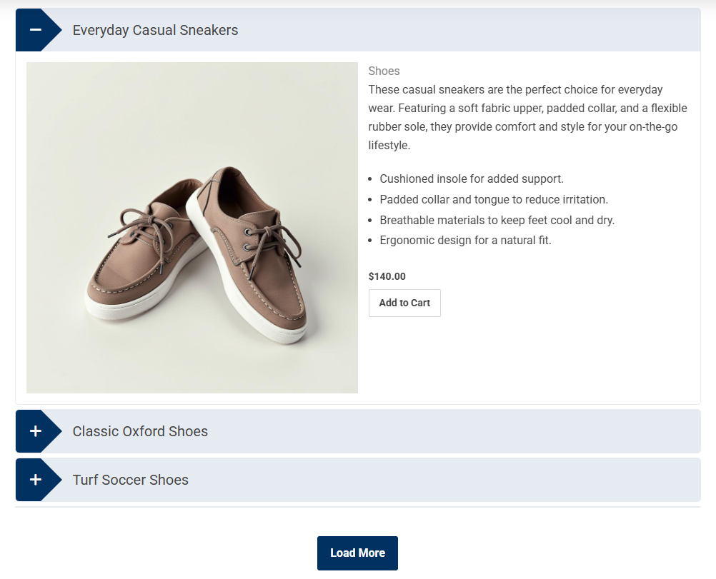 Display your WooCommerce products in an accordion format. It is a great way to organize product-related FAQs, specifications, or additional details in a structured, user-friendly layout without manual repetition.