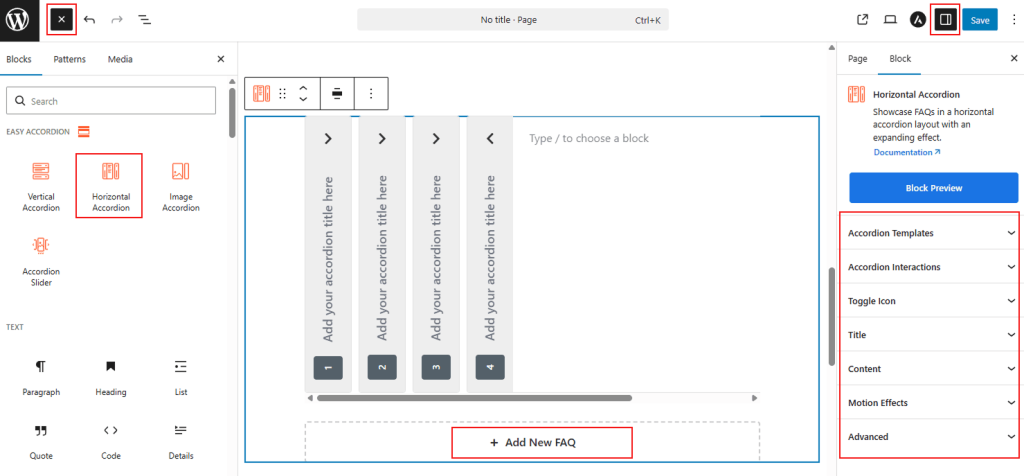 - You can also use the Easy Accordion Gutenberg block for live placement.
