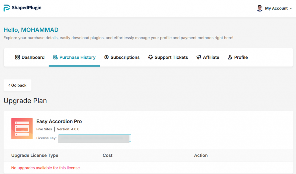 License upgrading is pretty straightforward and easy. You can upgrade your Personal (Single Site) license plan to a Business (Up to 5 Sites), or Agency (Unlimited Sites) plan directly from your account.