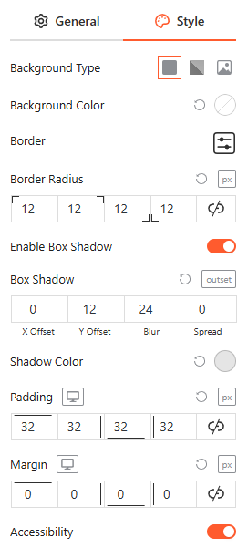 Accessibility: Toggle the Accessibility switch to enable optimized labels and focus states for screen readers and keyboard navigation.