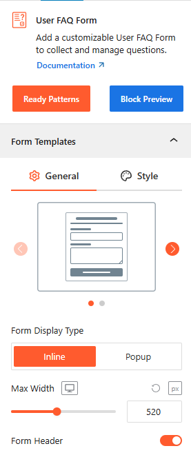 Using the User FAQ Form, you can streamline the question-collection process and tailor the form’s appearance to match your brand. Use the settings below to configure your block:
