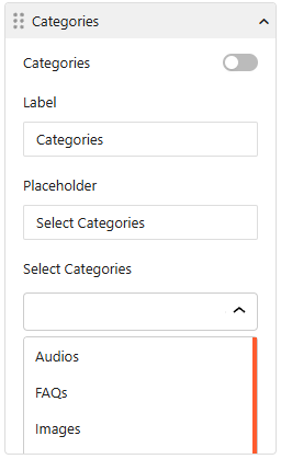 • Field Management: Toggle and reorder core fields such as Full Name, Email Address, Question, Answer Description, and Categories.