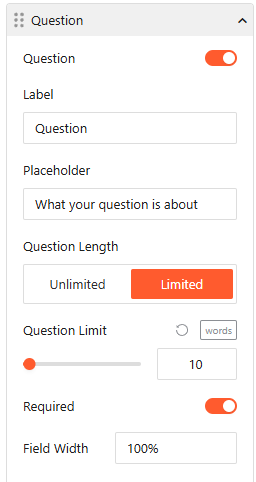 • Ajax Form Submission: Toggle this on to allow users to submit questions without the page refreshing.