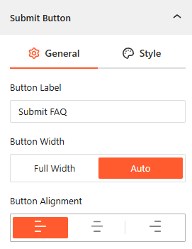 • Button Label: Enter custom text for the submission trigger, such as “Submit FAQ” or “Send Question”.